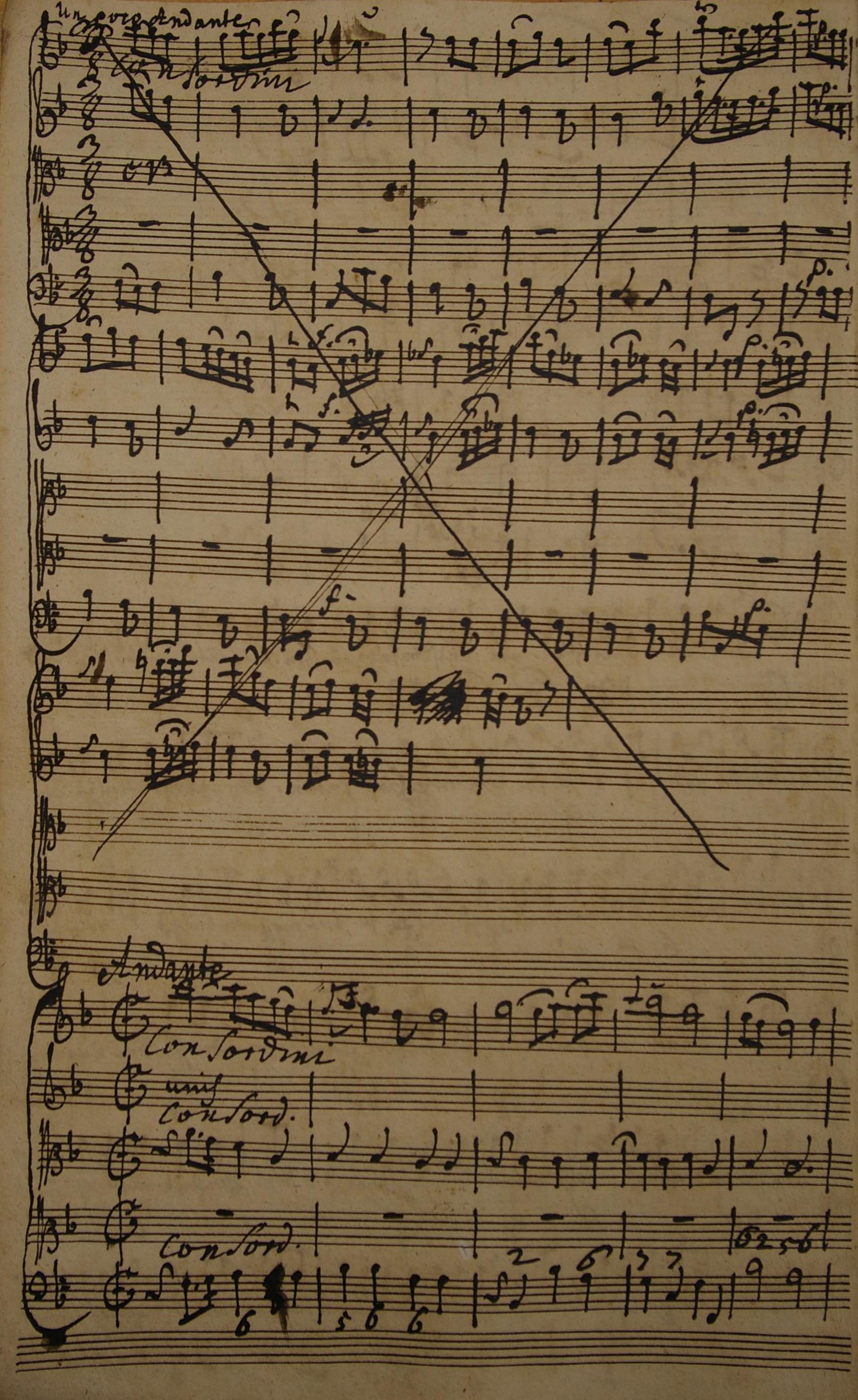 Autograph von Georg Anton Benda, Ausschnitt aus der Kantate "Du wagst es Lästerer", L 523, Foto: Sächsische Akademie der Wissenschaften zu Leipzig