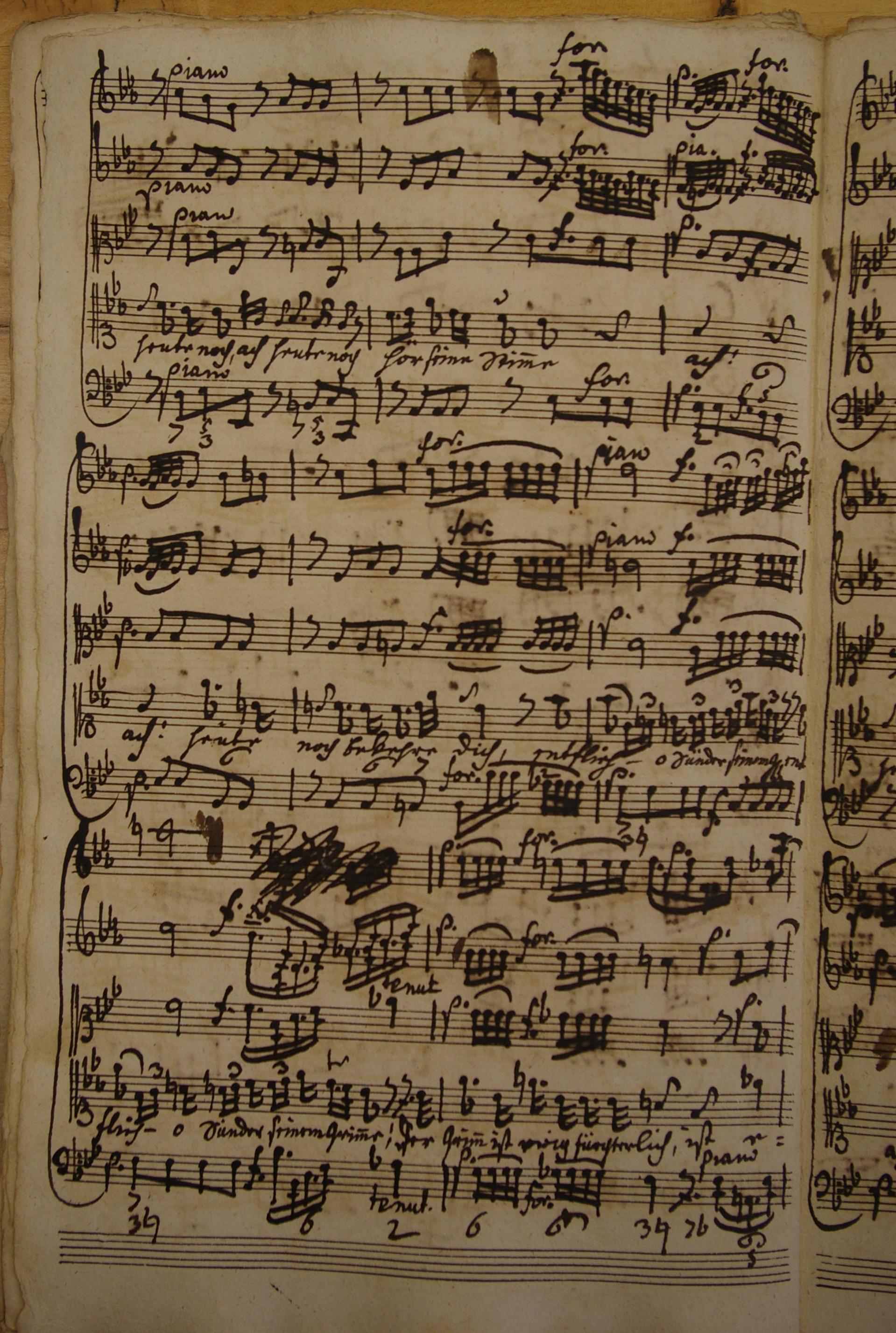 Autograph von Georg Anton Benda, Ausschnitt aus der Kantate "Wie schrecklich Herr sind deine Gerichte", L 585, Foto: Sächsische Akademie der Wissenschaften zu Leipzig