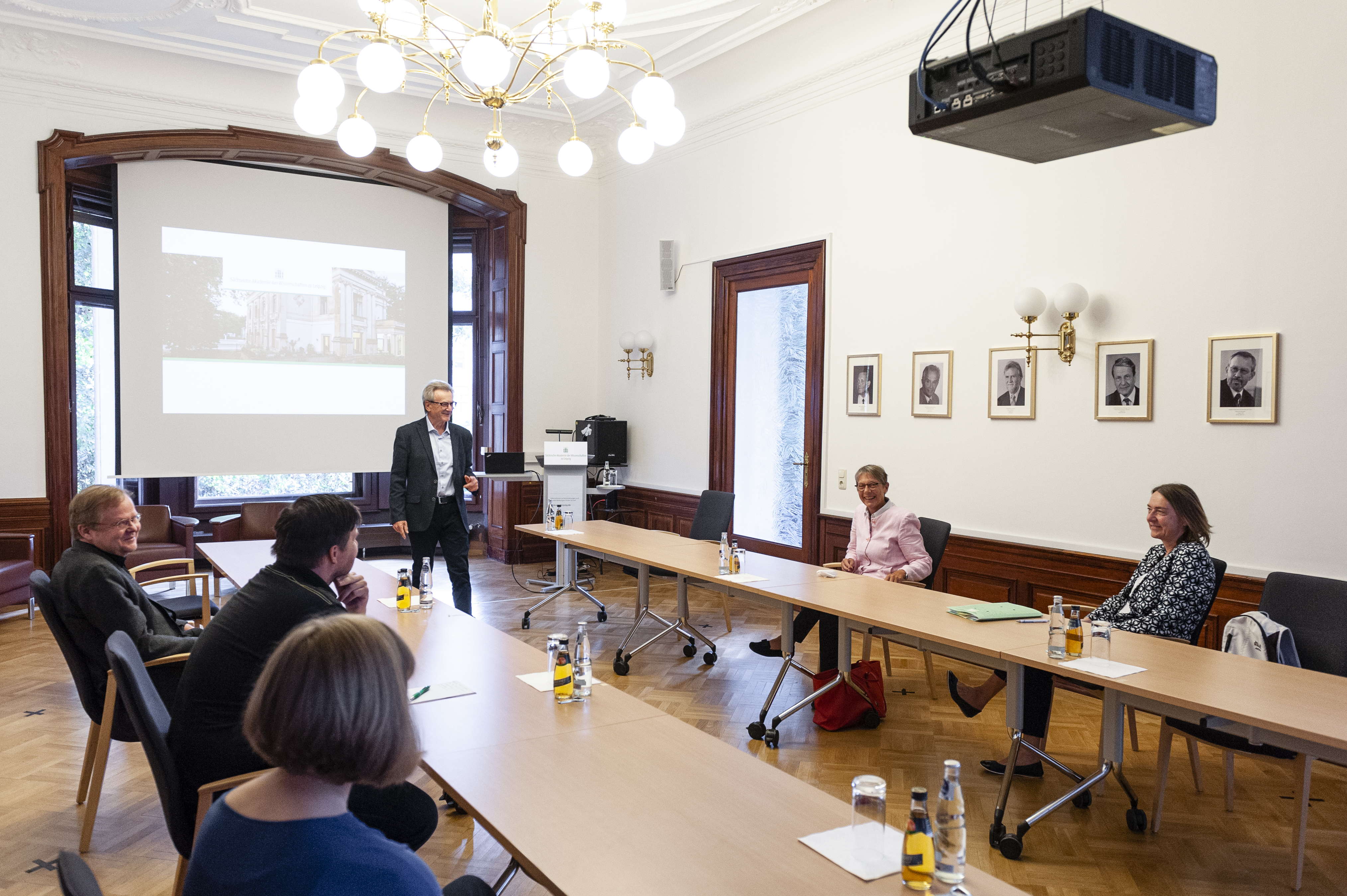 Akademie-Präsident Prof. Dr. Hans Wiesmeth informierte Staatssekretärin Andrea Franke (2. v. rechts) , Sächsisches Staatsministerium für Wissenschaft, Kultur und Tourismus, über die zahlreichen Inklusionsmaßnahmen der Sächsischen Akademie der Wissenschaften zu Leipzig. Foto: Marcus Karsten