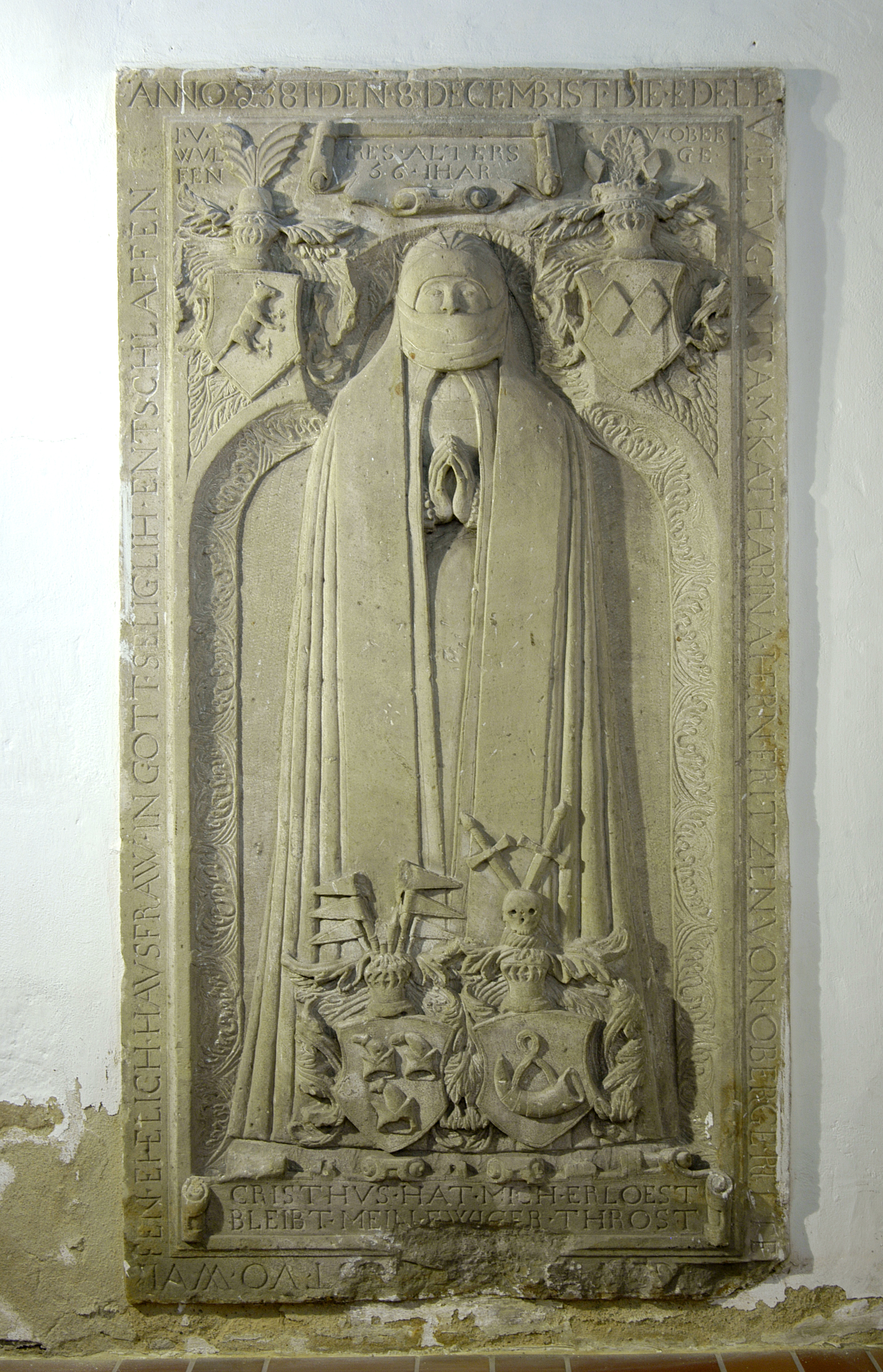 Halle, Laurentiuskirche, Grabplatte für Katharina von Wulfen (gestorben 1581)