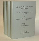 Frank-Michael Kaufmann / Peter Neumeister (Hg.): Glossar zur Buch’schen Glosse (= MGH. Fontes iuris Germanici antiqui, Nova series, X), Wiesbaden 2015, XXXIV, VI, VI und 1684 S. in 3 Bänden.